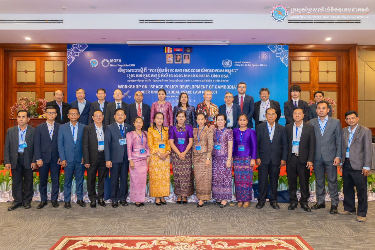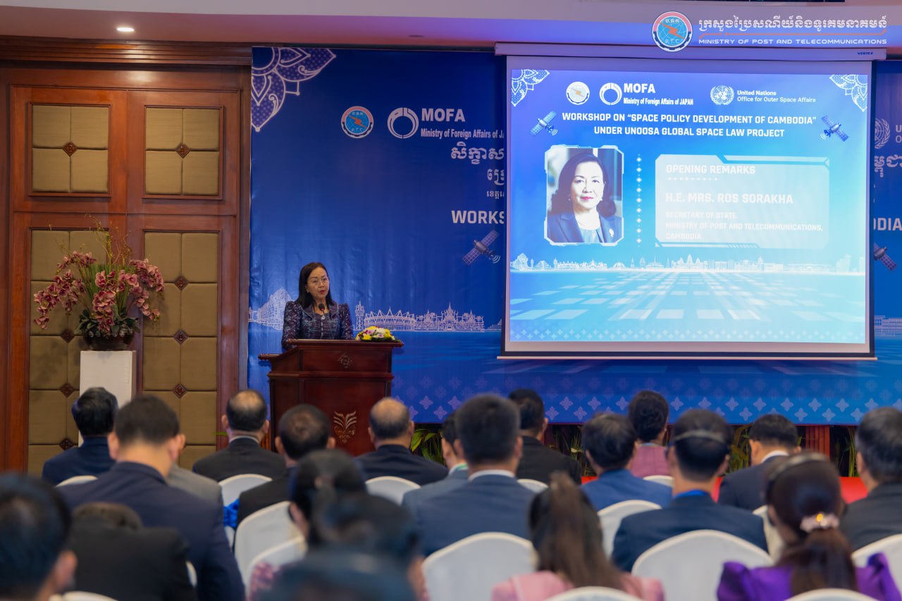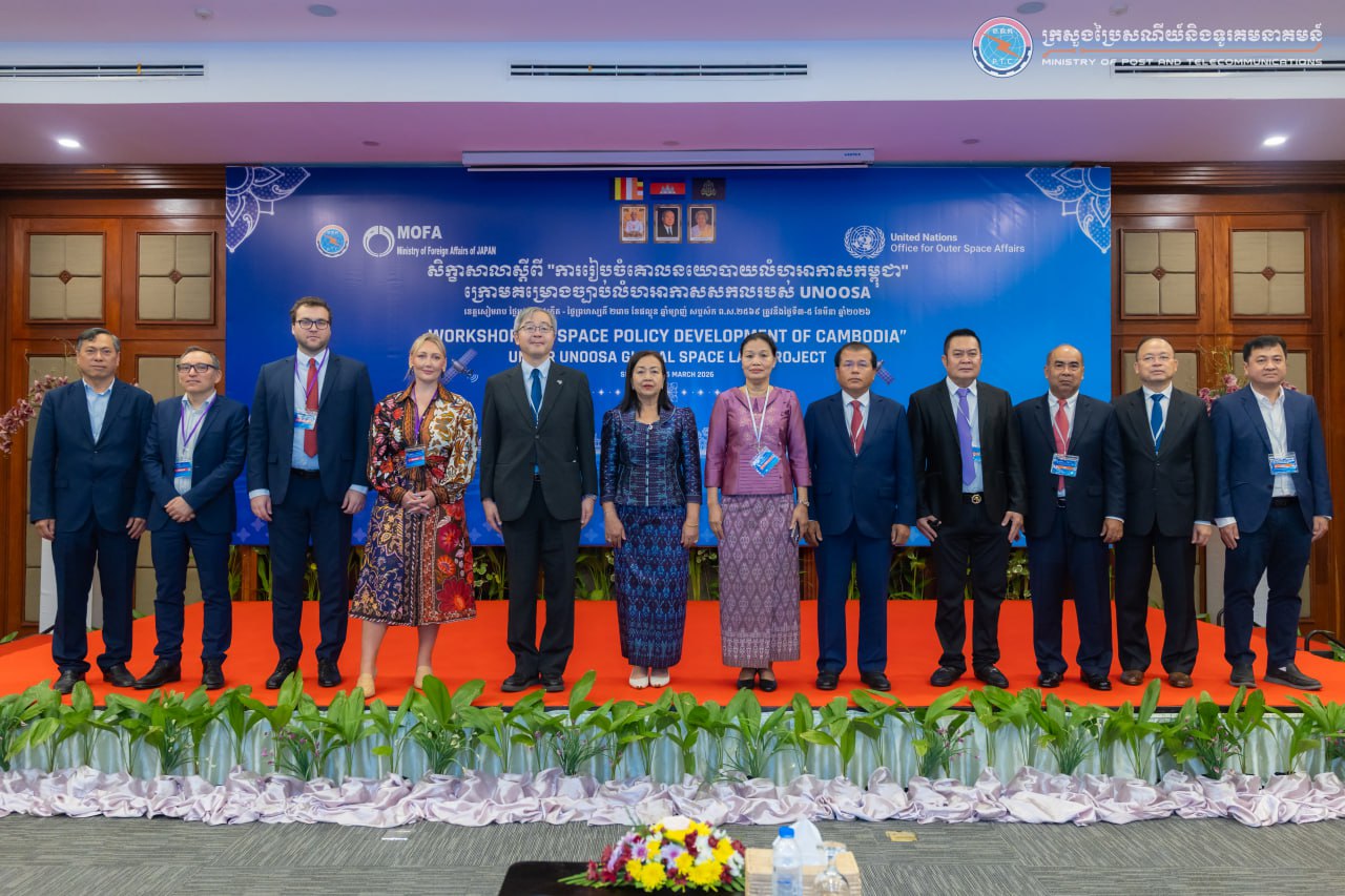 លោកជំទាវ រស់ សូរក្ខា រដ្ឋលេខាធិការក្រសួងប្រៃសណីយ៍ និងទូរគមនាគមន៍ (ក.ប.ទ.) នៅថ្ងៃទី៣ ខែមីនា ឆ្នាំ២០២៦ បានអញ្ជើញជាអធិបតី ក្នុងពិធីបើកសិក្ខាសាលាស្តីពី «ការរៀបចំគោលនយោបាយលំហអាកាសកម្ពុជា» ក្រោមគម្រោងច្បាប់លំហអាកាសសកលរបស់ការិយាល័យកិច្ចការអវកាស នៃអង្គការសហប្រជាជាតិ (United Nations Office for Outer Space Affairs “UNOOSA”)។